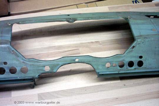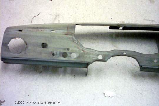 Der Vorbesitzer dieses Armaturenbrettes hat sich mit dem Einbau seines ISO-Norm-Radios gar keine Mühe gegeben. Leider kann ich Ihnen kein Foto davon zeigen, Ich hatte vorübergehend keine Kamera. Die Öffnung für das Radio war nicht sauber ausgeschnitten, sondern grob reingehackt und das Blech einfach mit der Zange nach innen gebogen. Die Schnitte waren viel zu groß. |
