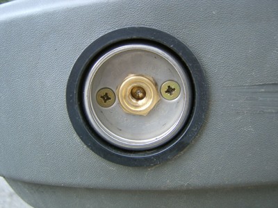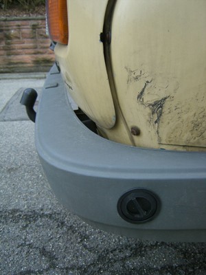 unten links: Wartburg konforme Schrift unten: der 10 mm Gastankstutzen, eingebaut in der Stoßstange hinten rechts. |