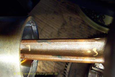 Da ich nicht über ein Arsenal von Feinmeßinstrumenten verfüge, blieb mir nur die Sicht- und Fühlkontrolle. Ich konnte nichts finden, was gewechselt werden müßte, um eventuellen groben Folgeschäden zuvor zu kommen. Nach dem Zusammenbau, verfolgte mich das Geräusch weiter, das mich an eine Hand voll losem Schweißdraht erinnert, das auf dem Motor zu liegen scheint - laut und stark.