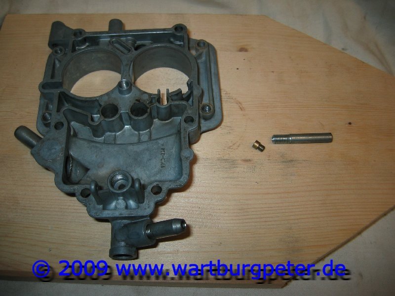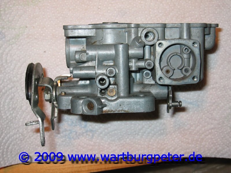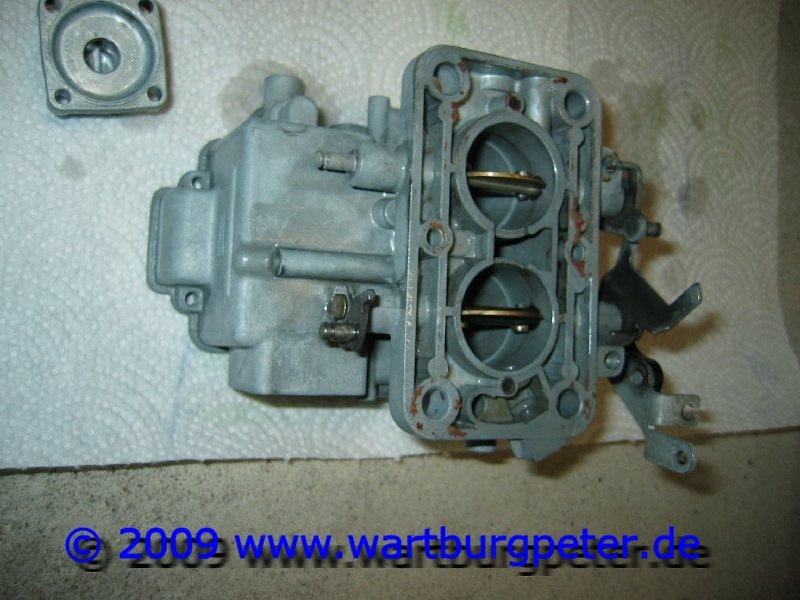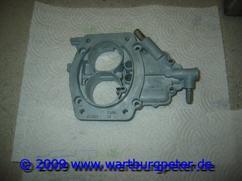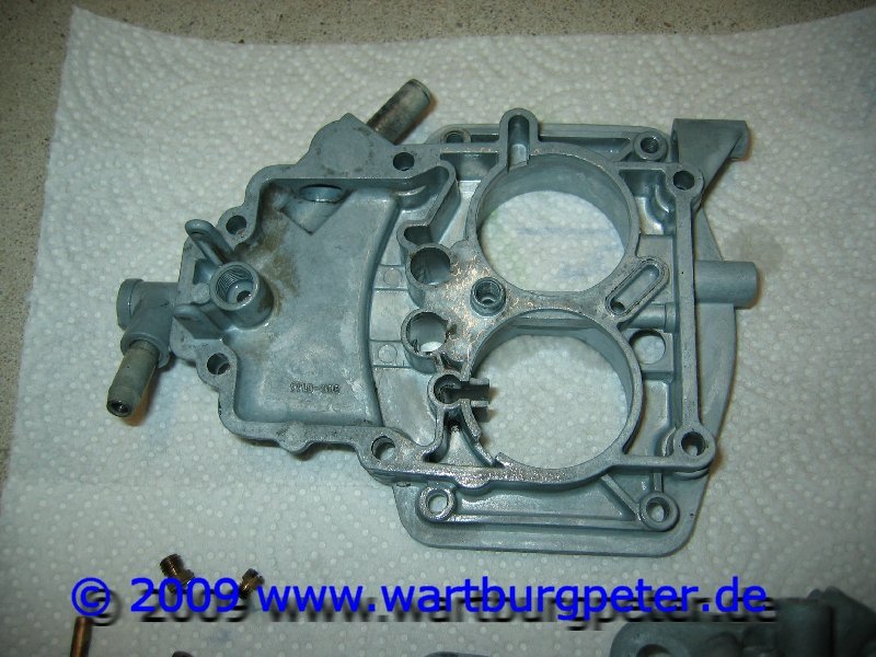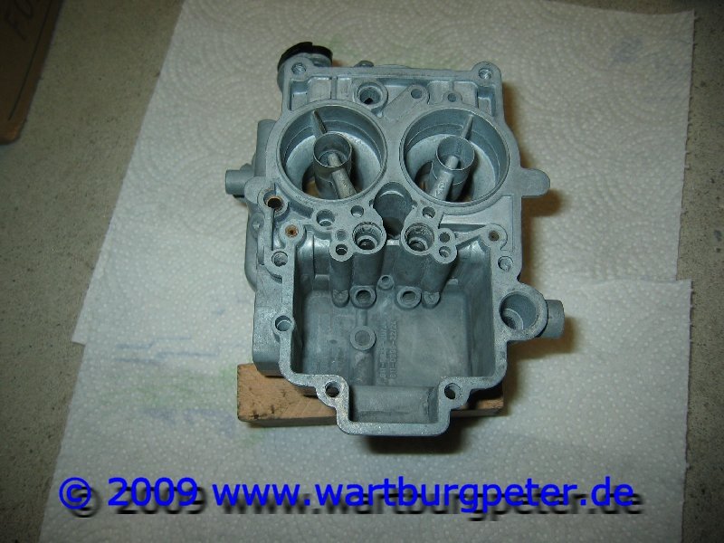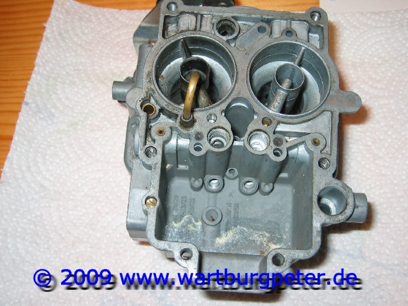 Wie man unschwer sehen kann, ist das mit dem "eben mal schnell" durchblasen des Vergasers nicht getan. Nach über 20 Jahren ist das Zink (ja, der Vergaser besteht nicht aus Aluminium, sondern wird im "Zinkdruckgußverfahren" hergestellt) so stark oxidiert, das es wie Schimmel alle Bohrungen, Kanäle und Flächen zugesetzt hat. Besonders die Düsen der zweiten Stufe sind komplett zugewachsen!