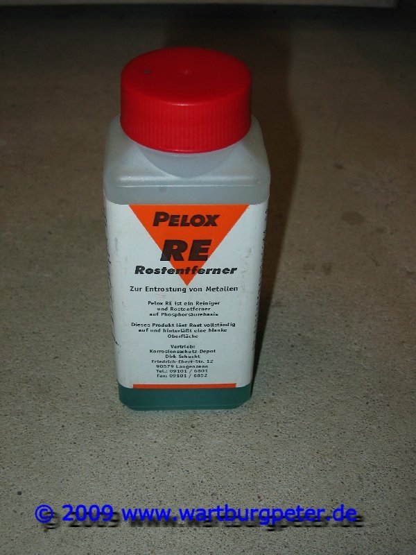 Hier habe ich eine nützliche Zutat gefunden. Irgend wann zur Restauration meines Rahmens und diverser Teile gekauft, aber nie aufgebraucht. Pelox RE enthält 25% Phosphorsäure zur Entrostung. Klar, da steht nix von Zink, Aluminium etc. drauf, dafür hat man das Zeug nicht verkauft.