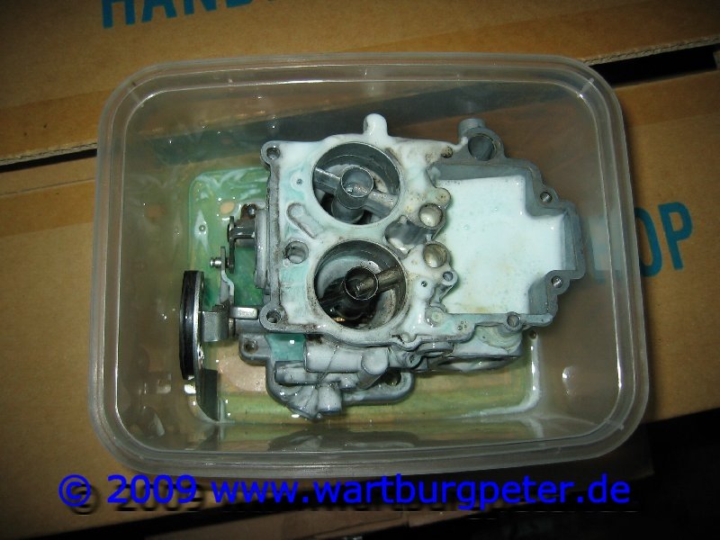 Da träumt man gern vom sagenumwobenen Ultraschallbad. Jedoch in der Größe, daß ein zerlegter Jikov-Vergaser dort hinein paßt, ist so ein Teil unbezahlbar teuer. Für die einmalige Anwendung alle x Jahre sowieso - und, ob der Vergaser, teilweise oxidiert wirklich so sauber wie neu wird?