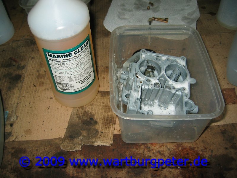 Auf größeren Oldtimer Teilemärkten präsentieren sich hin und wieder Vertreter mit aquariengroßen Becken, gefüllt mit irgend einer "Supersubstanz", die ein vermuchten Vergaser von ganz allein sauber macht. Toll! Das Becken auf der Oldtema, das ich dort sah, war so groß, daß dort der Zylinderkopf drinnen Platz gefunden hätte!