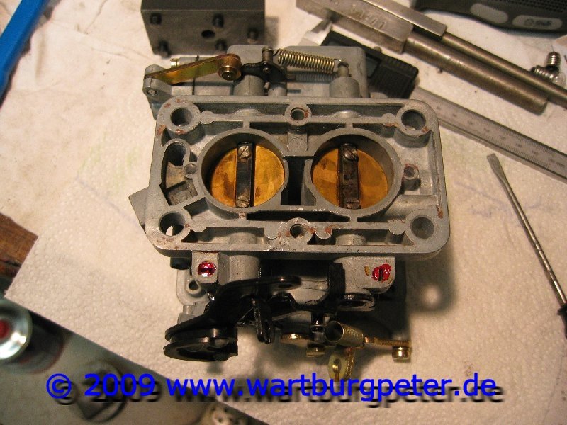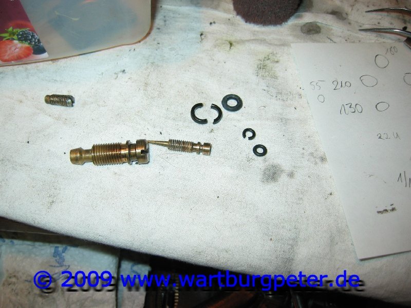 Die Dichtungen der CO- und Leerlaufluftschraube waren abgenutzt, spröde, bzw. aufgeplatzt. Keine Chance, die müssen erneuert werden. Der VErgaser soll schließlich an diesen Stellen dicht sein, sonst läßt er sich nicht einstellen.