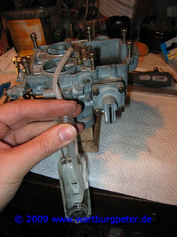 Ich bin kein Chemiker, daher vorsichtig. Zunächst probiere ich in der Schwimmerkammer unverdünnt, wie schnell die Reaktion ist, wie gefräßig die Substanz.